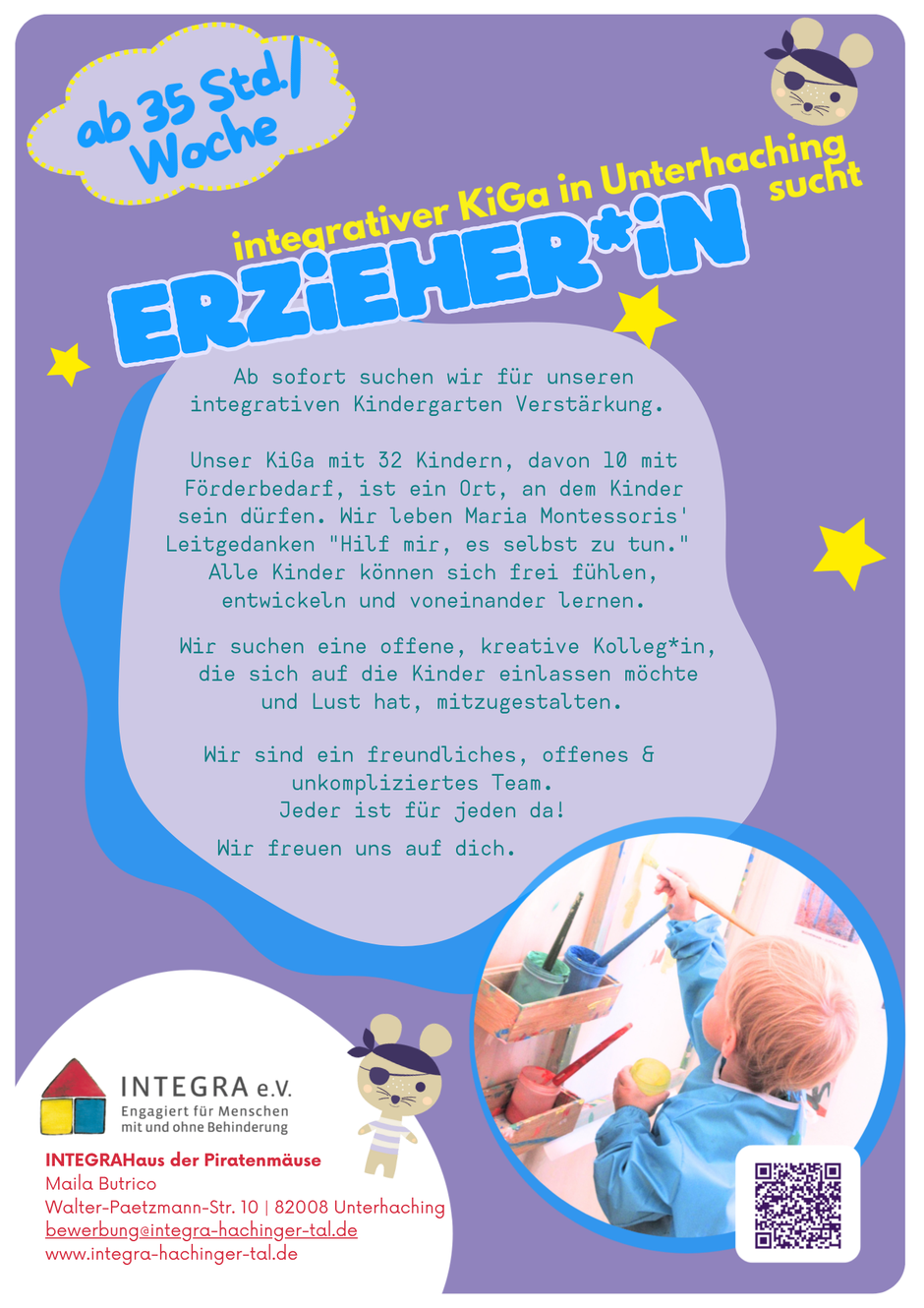 die Stelle als pädagogische Fachkraft/Erzieherin im integrativen KiGa Piratenmäuse?